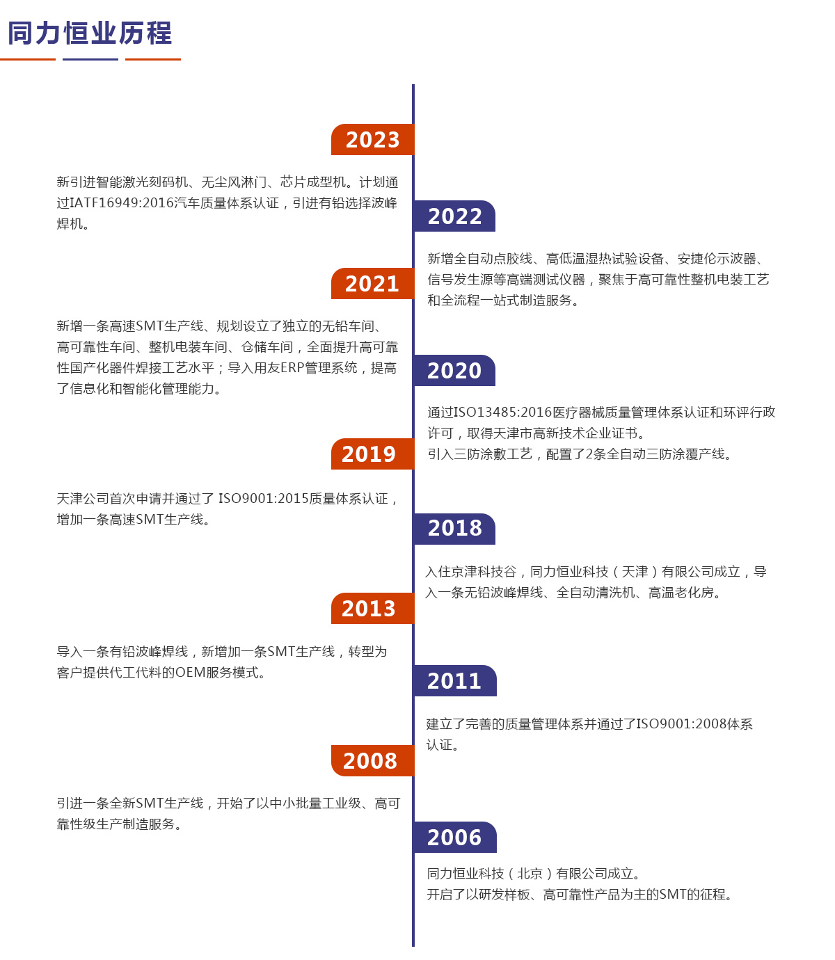同力恒業(yè)科技成立于2006年,專業(yè)從事電子制造服務(wù)(EMS),專注于為客戶提供產(chǎn)品開發(fā)、工藝設(shè)計、物料配套、精密貼裝、插件焊接、三防涂敷、整機電裝、測試老化以及包裝運輸、售后維修等整個供應鏈解決方案。公司定位于高可靠性及中高端產(chǎn)品電子制造服務(wù),在通訊導航、儀器儀表、醫(yī)療設(shè)備、汽車電子等領(lǐng)域具有豐富的一站式制造服務(wù)經(jīng)驗。